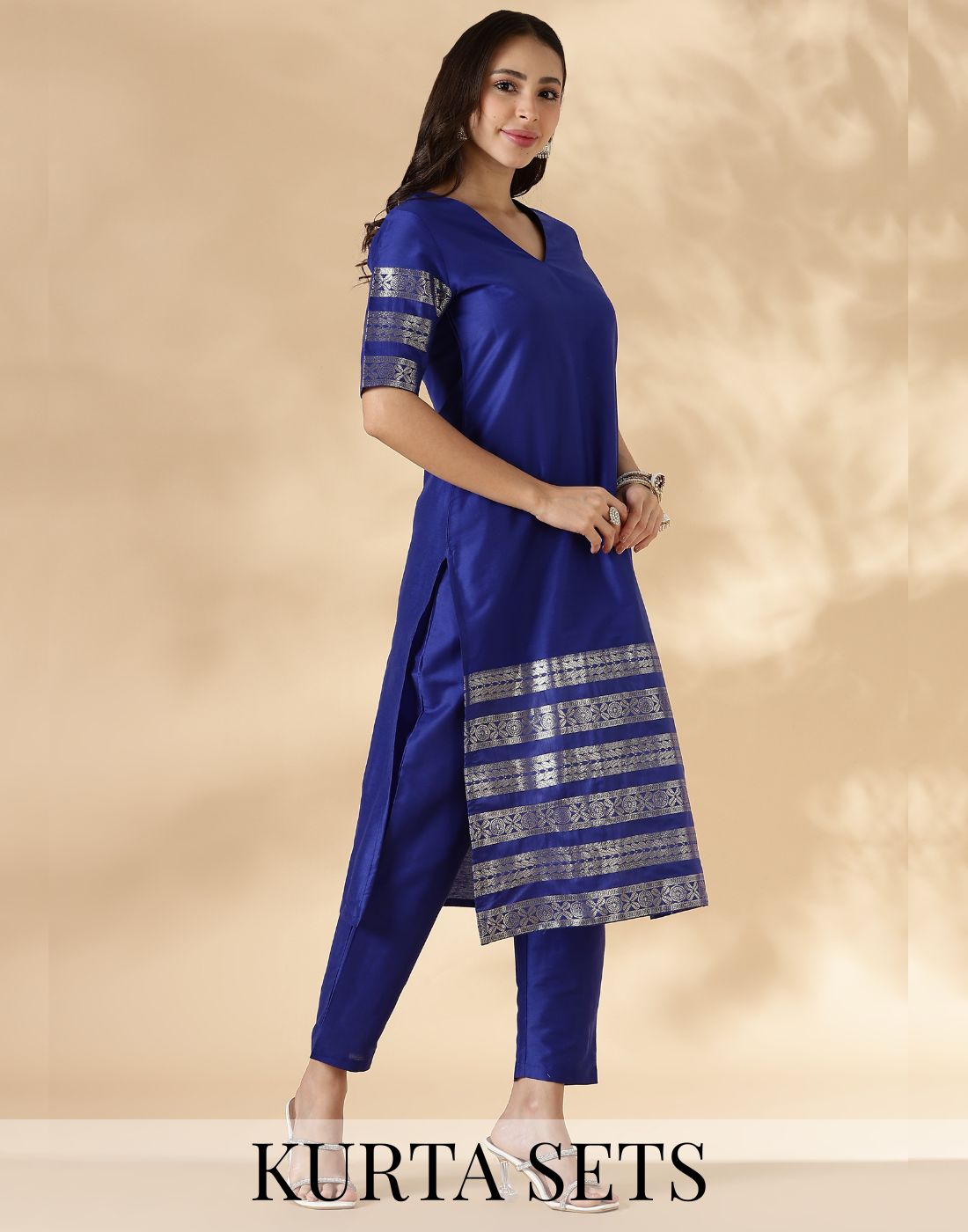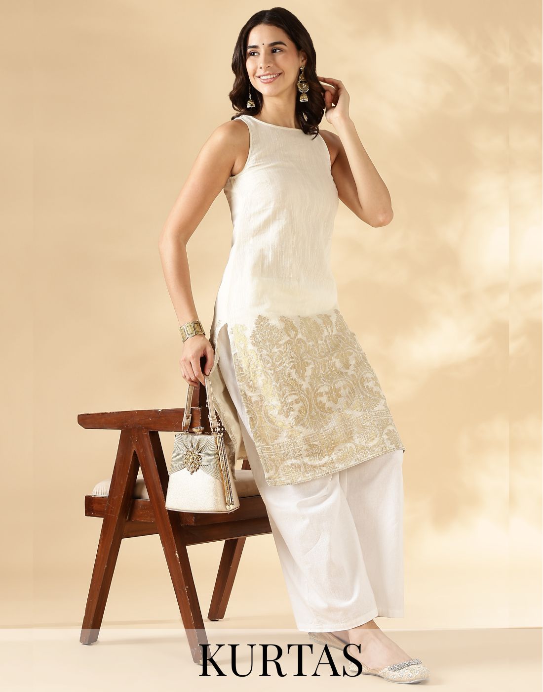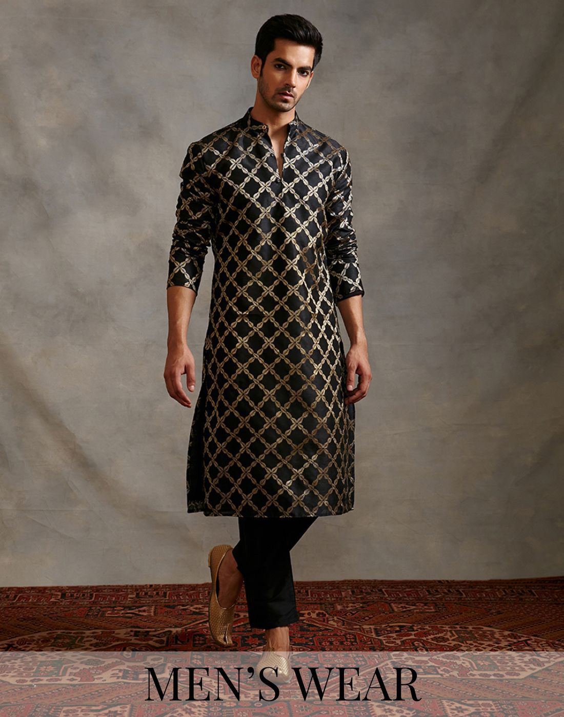Brown Kurta Pant with orange Woven Design Bandi Set
