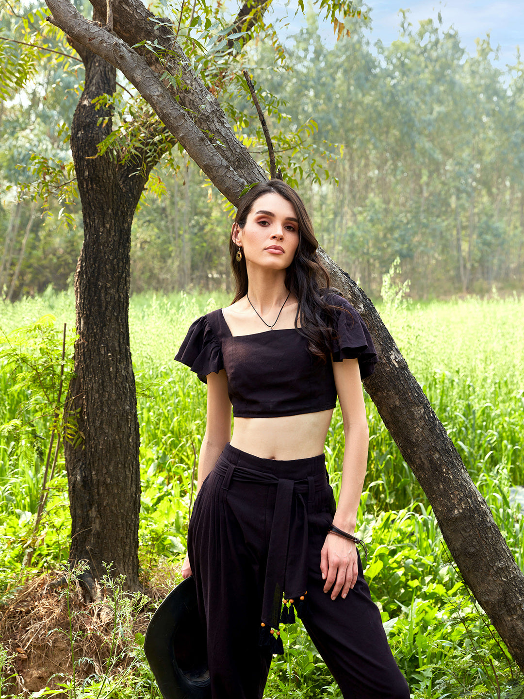 The Beluga Pleated Bottom has Pleats at waist and a belt embellished with beads.